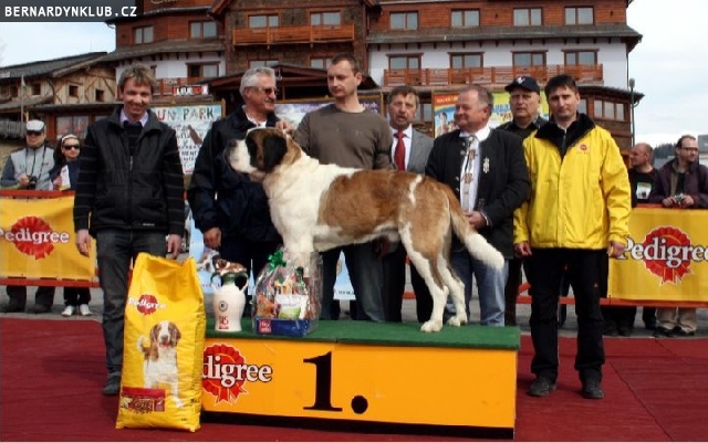 Obrovský úspěch slavila česká výprava na Speciální výstavě svatobernardských psů ve slovenských Donovalech. Z celkového počtu 35 přihlášených (SK, PL, HUN, CZ) vybral německý rozhodčí Werner Schmid jako celkového vítěze krátkosrstého psa Frajera Otíka JR od Strážců hor. Stalo se tak poprvé v historii této výstavy, kdy zvítězil krátkosrstý bernardýn nad dlouhosrstými! U dlouhosrstých se stal vítězem plemen Ch. Harley vom Kuseler Musikantenland. Titulem nejlepší feny mezi krátkosrstými se může pyšnit Dixie od Strážců hor a mezi dlouhosrstými její sestra Diggy od Strážců hor. Všichni čtyři jmenovaní mají české majitele!