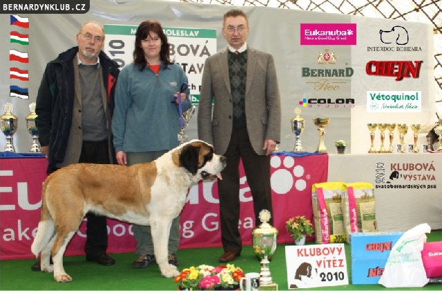 Klubová výstava svatobernardských psů 2010 je již minulostí. V sobotu 27. března odjížděla z Mladé Boleslavi úplně nová kolekce klubových vítězů. V konkurenci téměř padesáti přihlášených bernardýnů za účasti zahraničních vystavovatelů zvítězila krátkosrstá fena českého chovu Agáta z Oldřistlouk.