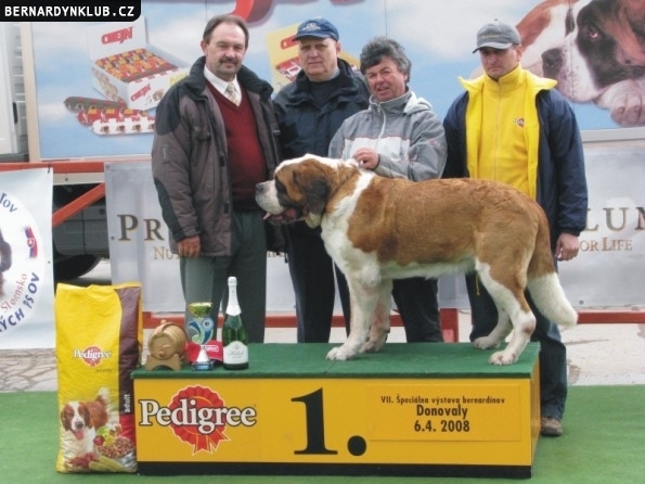 Ve víkendových dnech 19. – 20. dubna 2008 se pořádala na výstavišti v Českých Budějovicích mezinárodní výstava psů všech plemen s celkovým počtem 3589 přihlášených psů. Bernardýnů se sešlo 15, z toho 9 dlouhosrstých a 6 krátkosrstých. Posuzovatelem byl p. Vladimír Adlt v kruhu č. 9 na venkovní ploše poblíž pavilonu E5.
