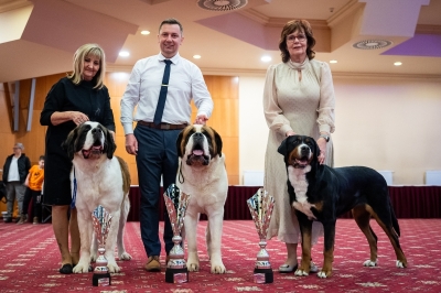 Ve dnech 28. – 30. listopadu 2025 se konal „maraton“ čtyř výstav (dvou národních a dvou mezinárodních) v chorvatském Záhřebu. V pátek byla na programu národní výstava, v sobotu dopoledne mezinárodní výstava a potom národní výstava a v neděli se pokaračovalo mezinárodní výstavou. Náš klub reprezentovalo 6 bernardýnů různého věku a téměř všichni se zúčastnili všech výstav. Pouze veterán Fridolín byl v sobotu přihlášen jen na dopolední výstavu. Na všech čtyřech výstavách získal titul BOB krátkosrstý pes Ch. Shiraz Rios Saints. V dlouhosrsté varietě na obou národních výstavách byl za vítěze plemene vybrán veterán C.I.B. Fridolín ze Statku od Dobré vody a při nedělní mezinárodce získal BOB pes Ch. EW. Connor Fortis Silesia.